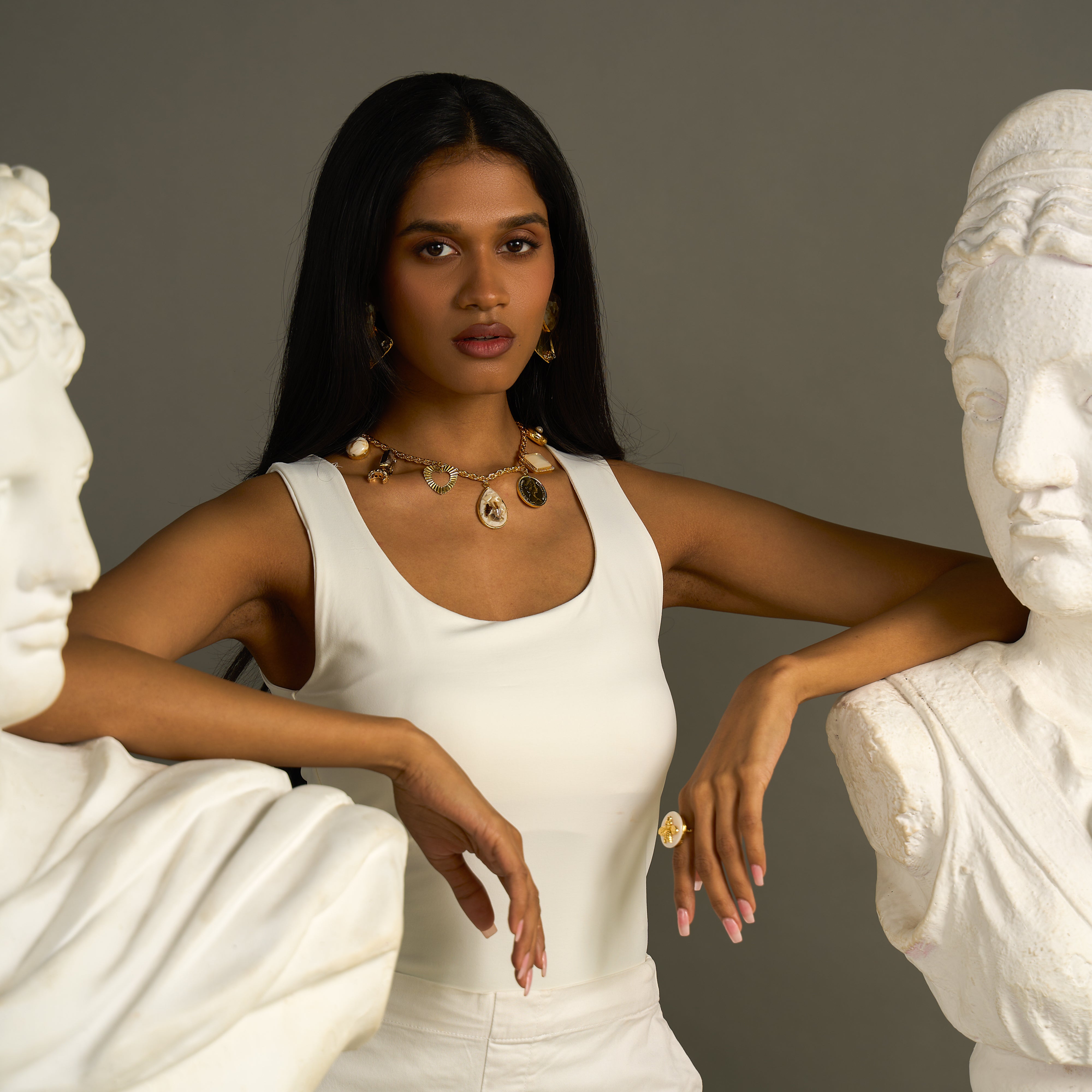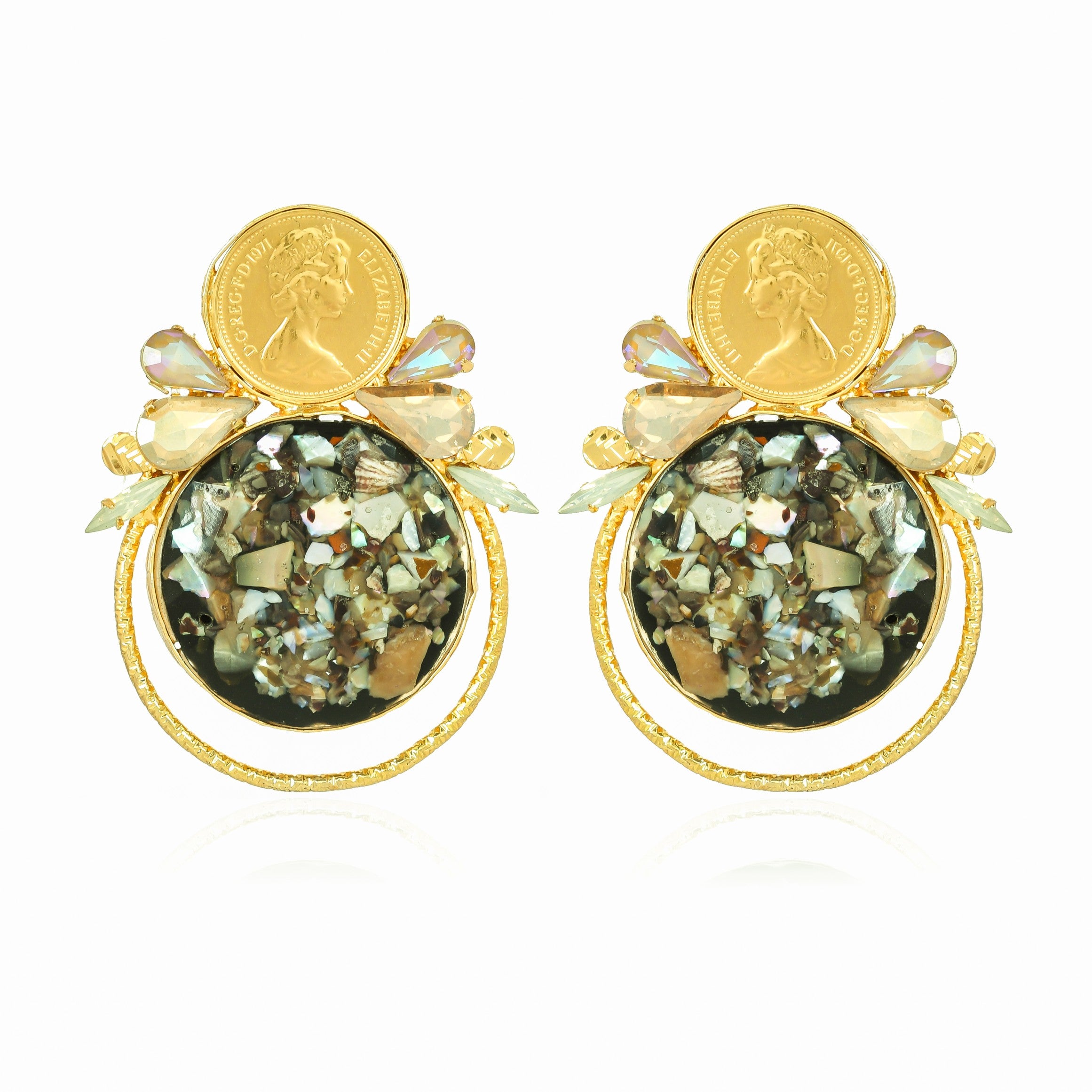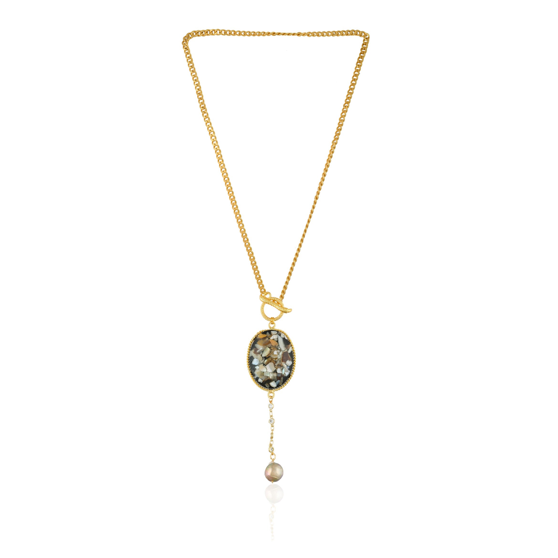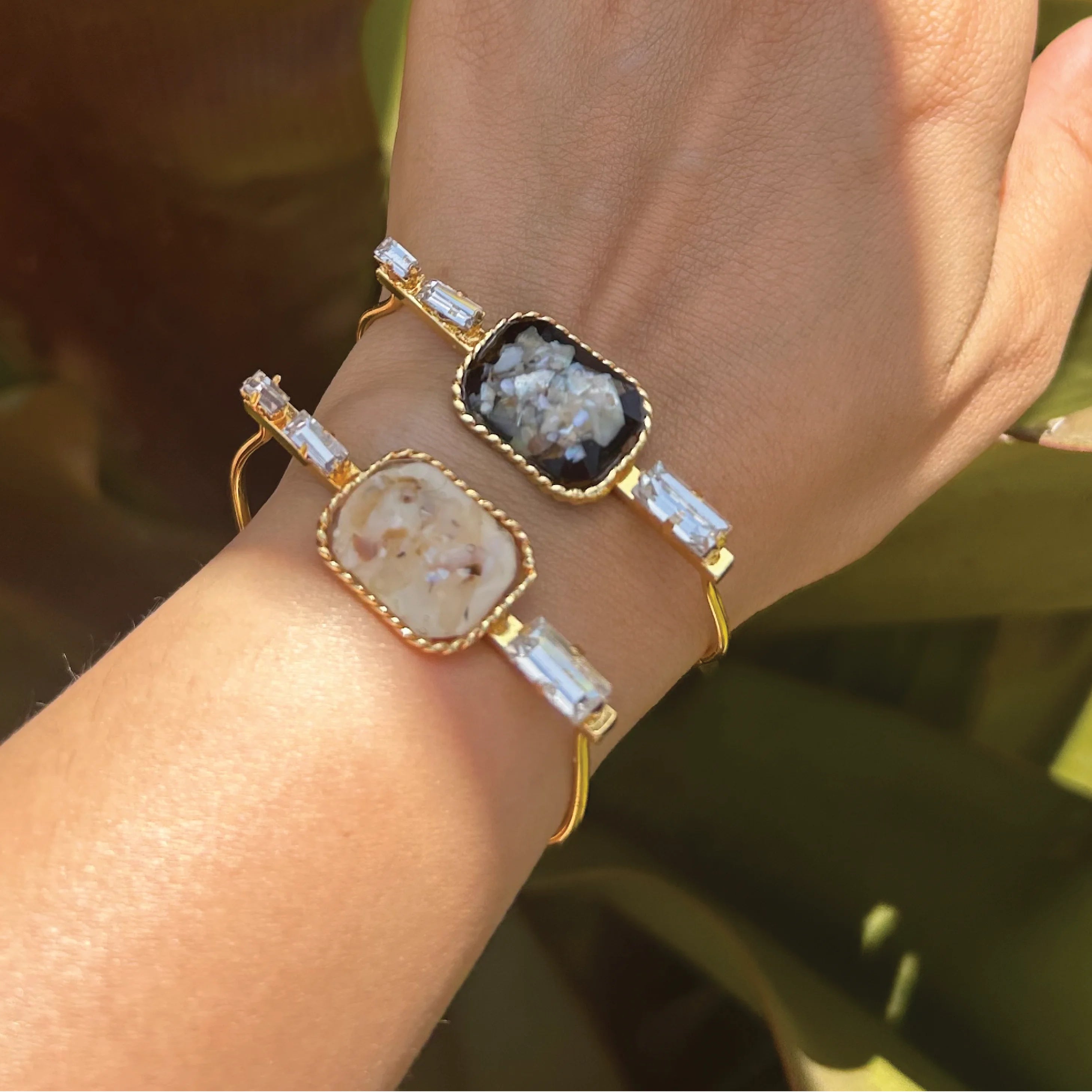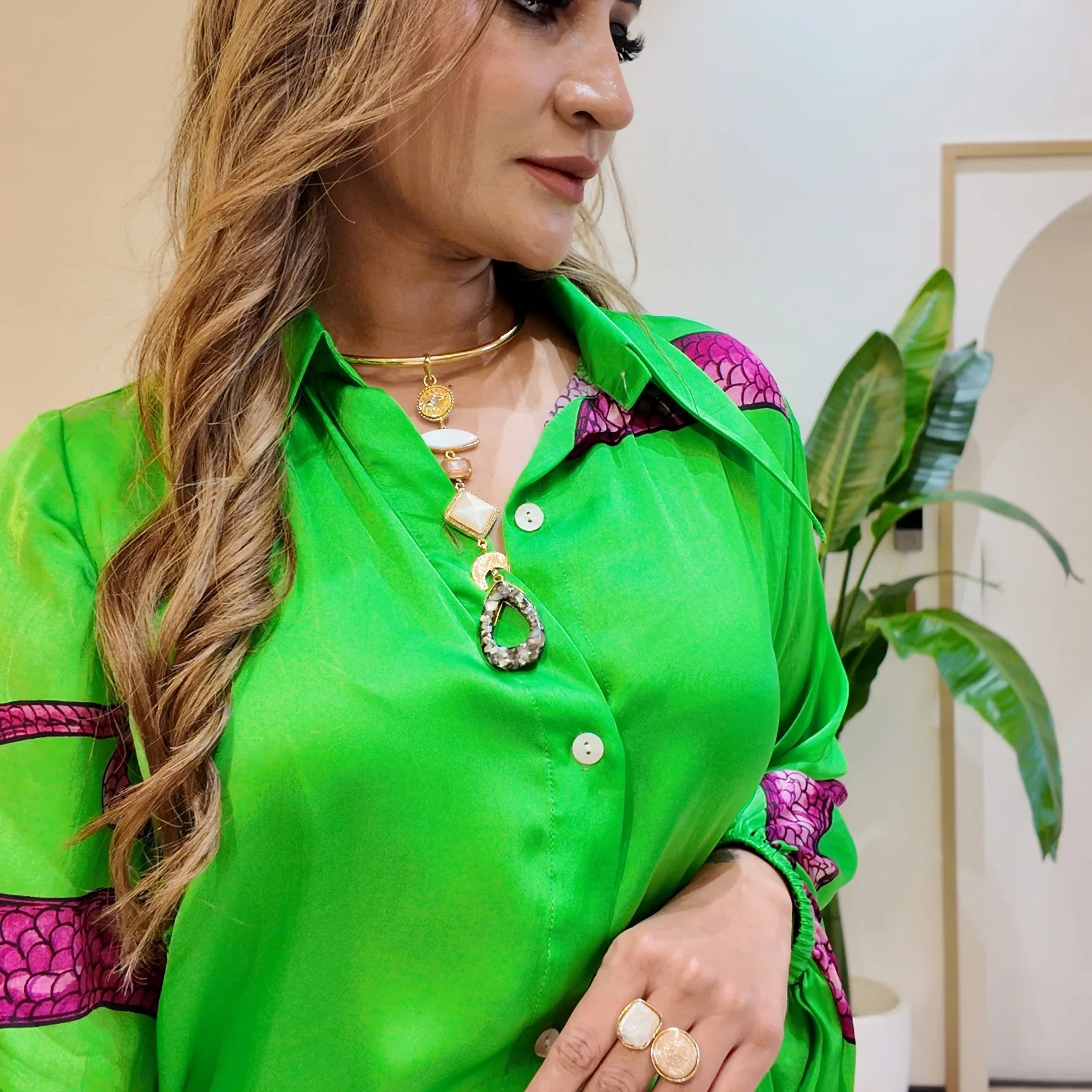 Our core metal is brass with 14k gold plating which is anti-tarnish and skin friendly. We use natural stones which retain their original color and shape which are ethically sourced across our vendor base worldwide