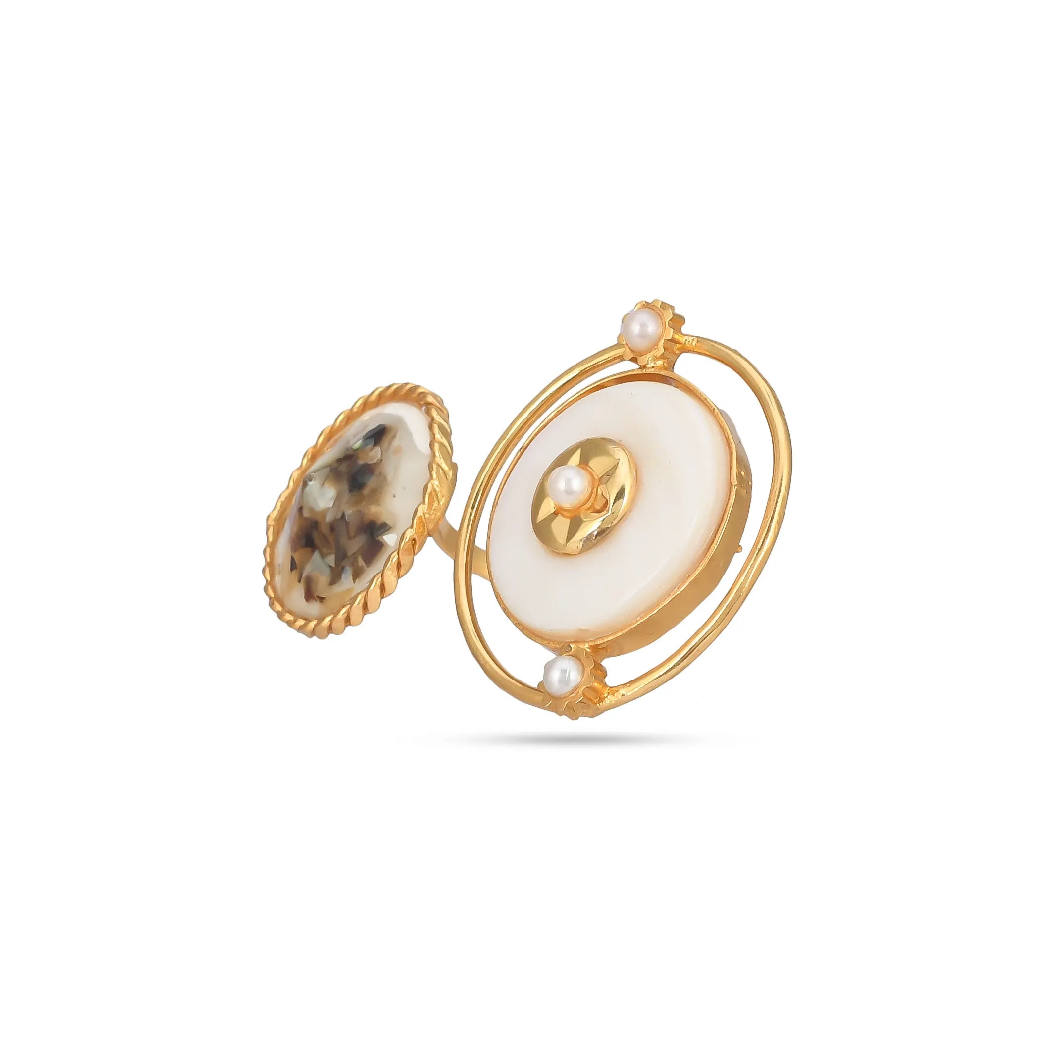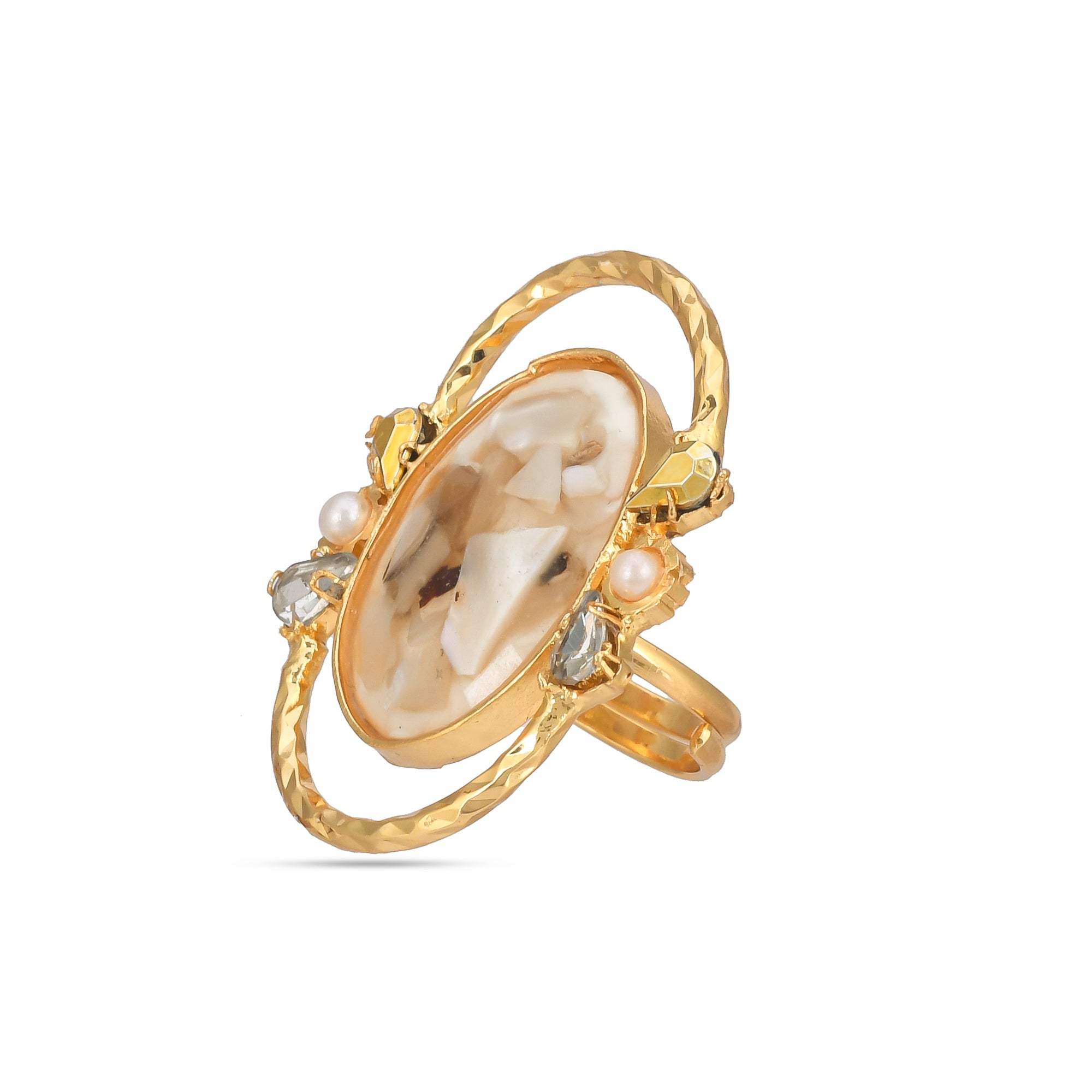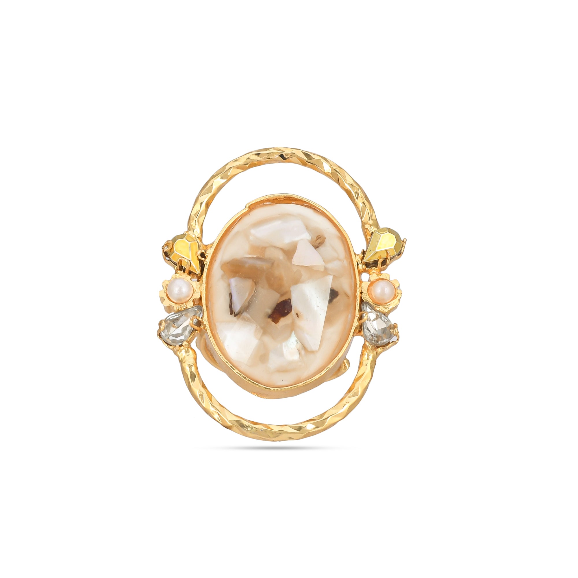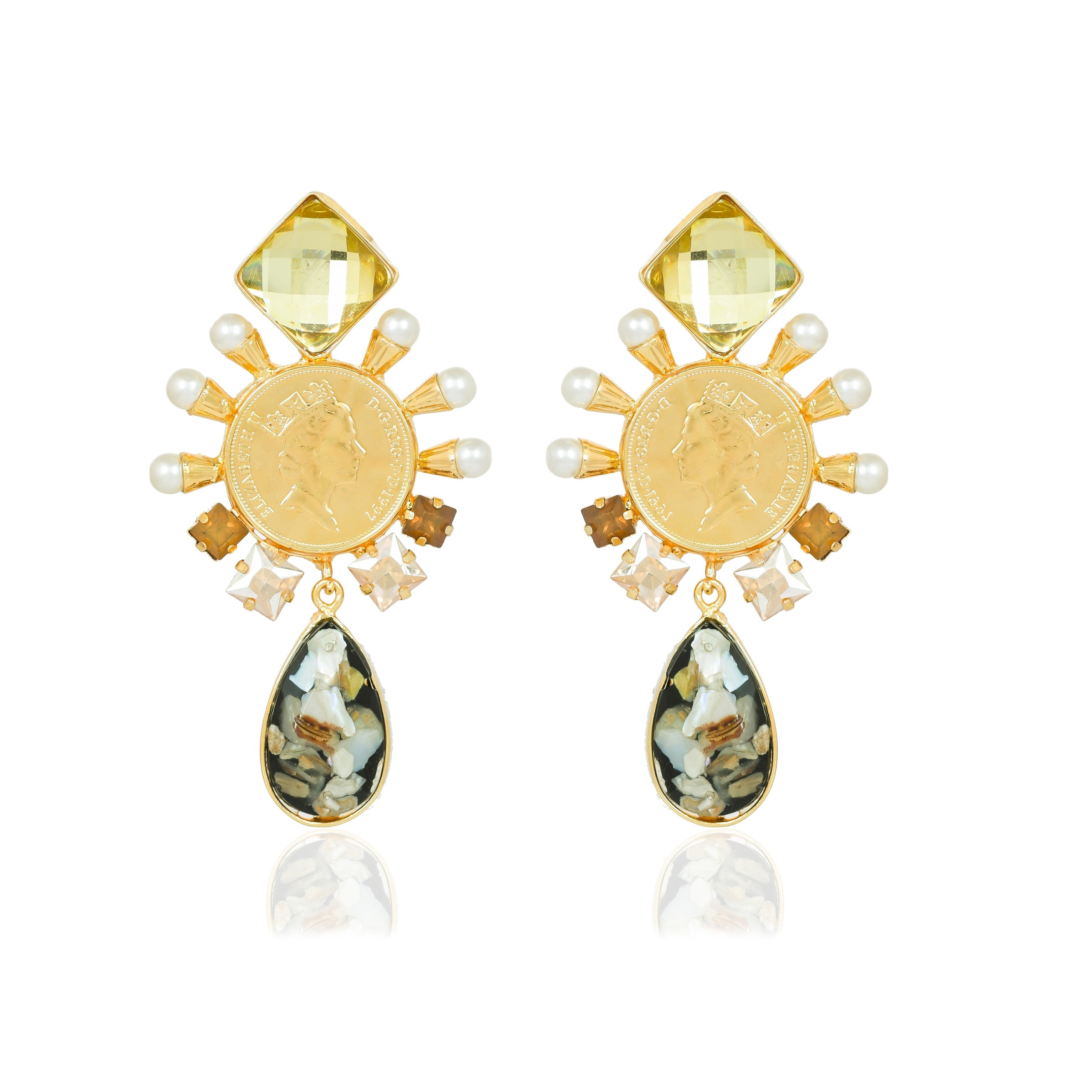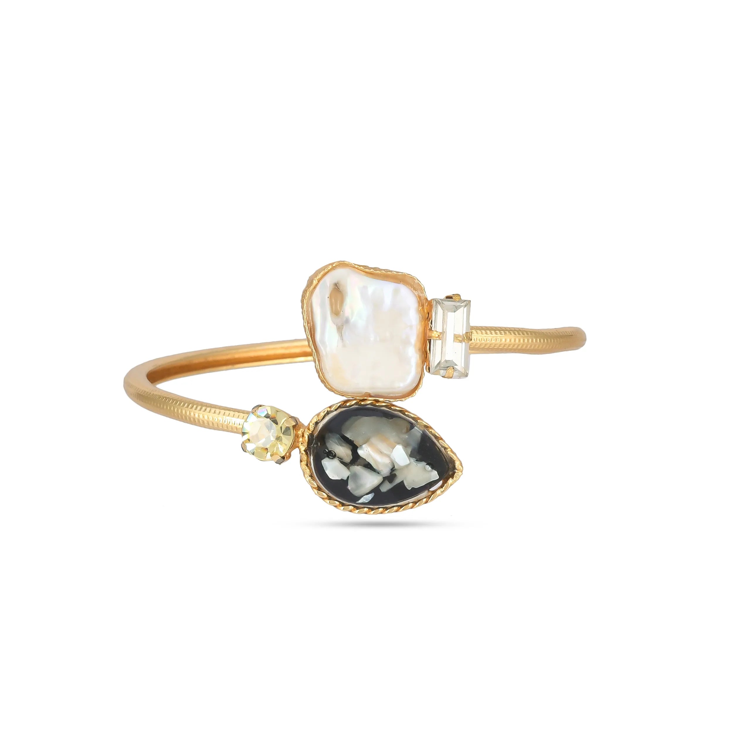 Our core metal is brass with 14k gold plating which is anti-tarnish and skin friendly. We use natural stones which retain their original color and shape which are ethically sourced across our vendor base worldwide