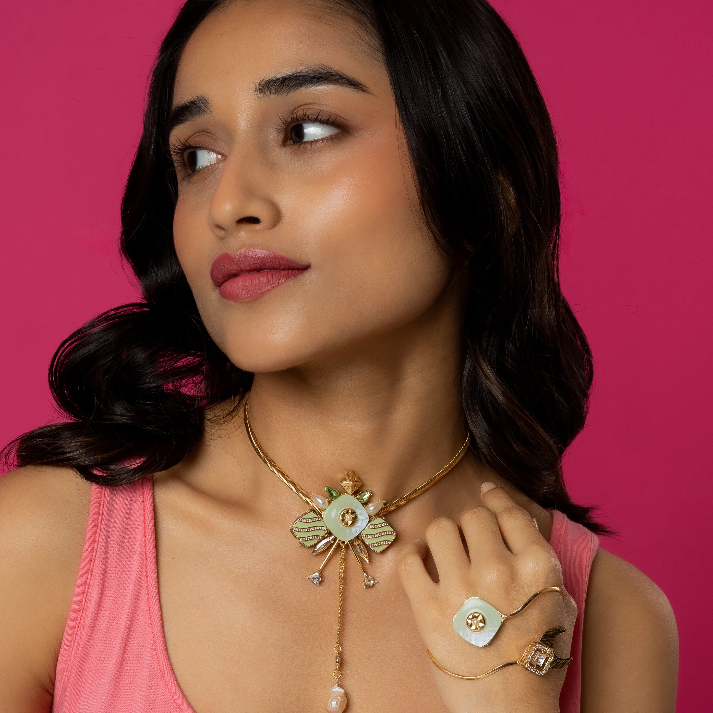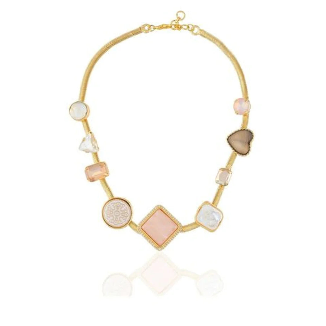 Natural elements such as stones and mother of pearl combine together to create unique textural mixes as well as naturally vibrant color stories