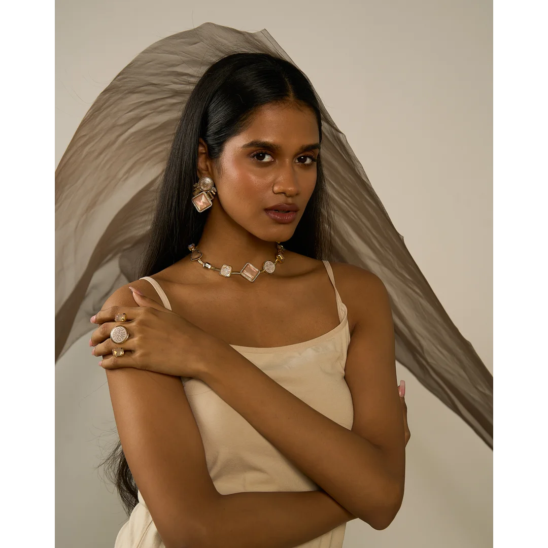 A realm of enduring sophistication, where each jewel seamlessly merges classic design with a contemporary twist. Inspired by the opulence of radiant pearls and the grace of peach moonstone, every piece evokes timeless glamour and modern elegance.
