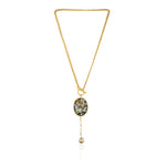 A striking gold chain with an oval mother-of-pearl pendant, perfect for daily wear. It’s the kind of piece that adds just the right touch of elegance to your everyday look.