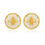 Modern artistry meets edgy elegance. A stunning metallic bug motif sits boldly on a mother-of-pearl canvas, framed with sleek gold accents. This piece is wearable art at its finest.