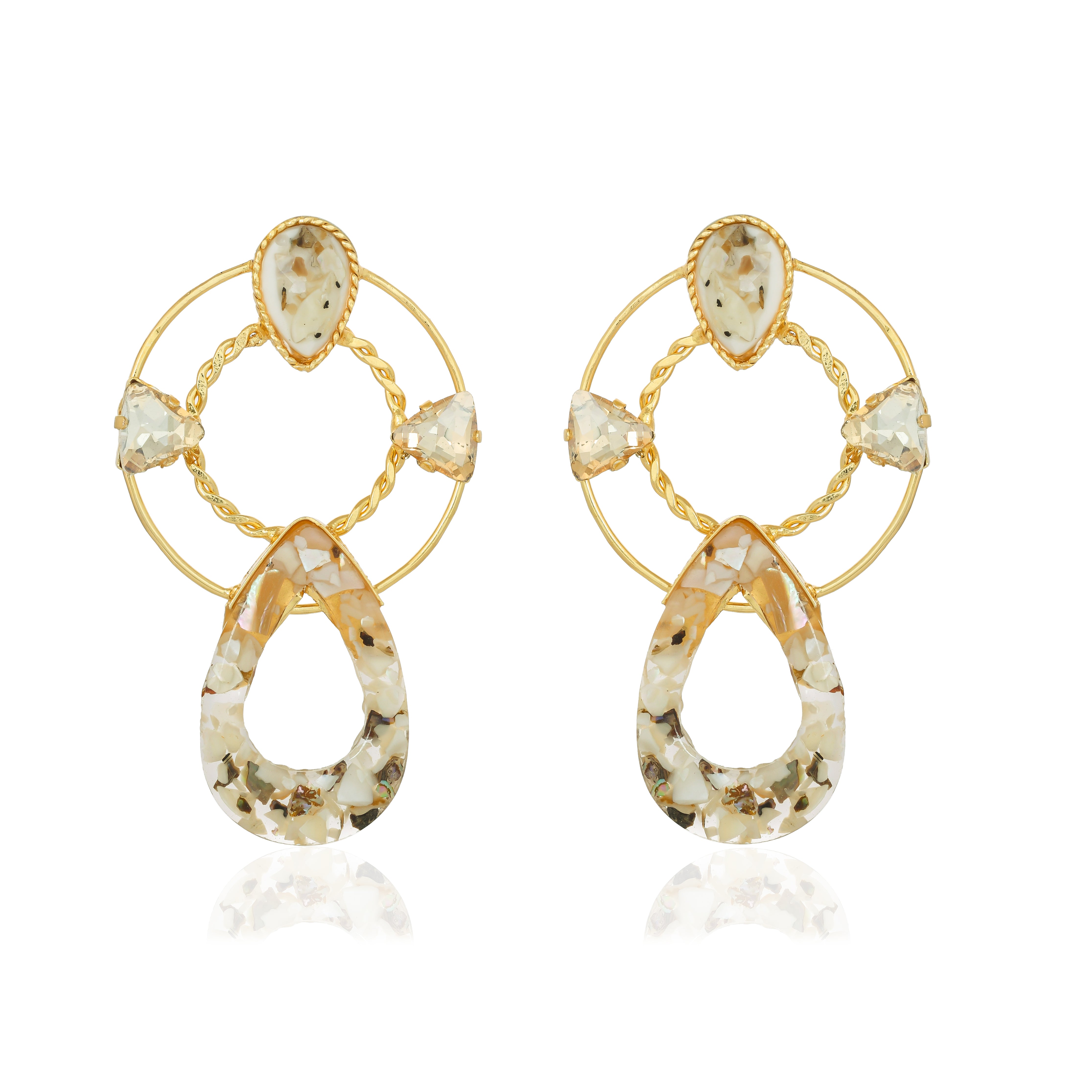 Elevate your look with these show-stopping hoops, featuring a modern twist on classic style. Mother-of-pearl and zircon stones team up to bring just the right amount of sparkle to any outfit.