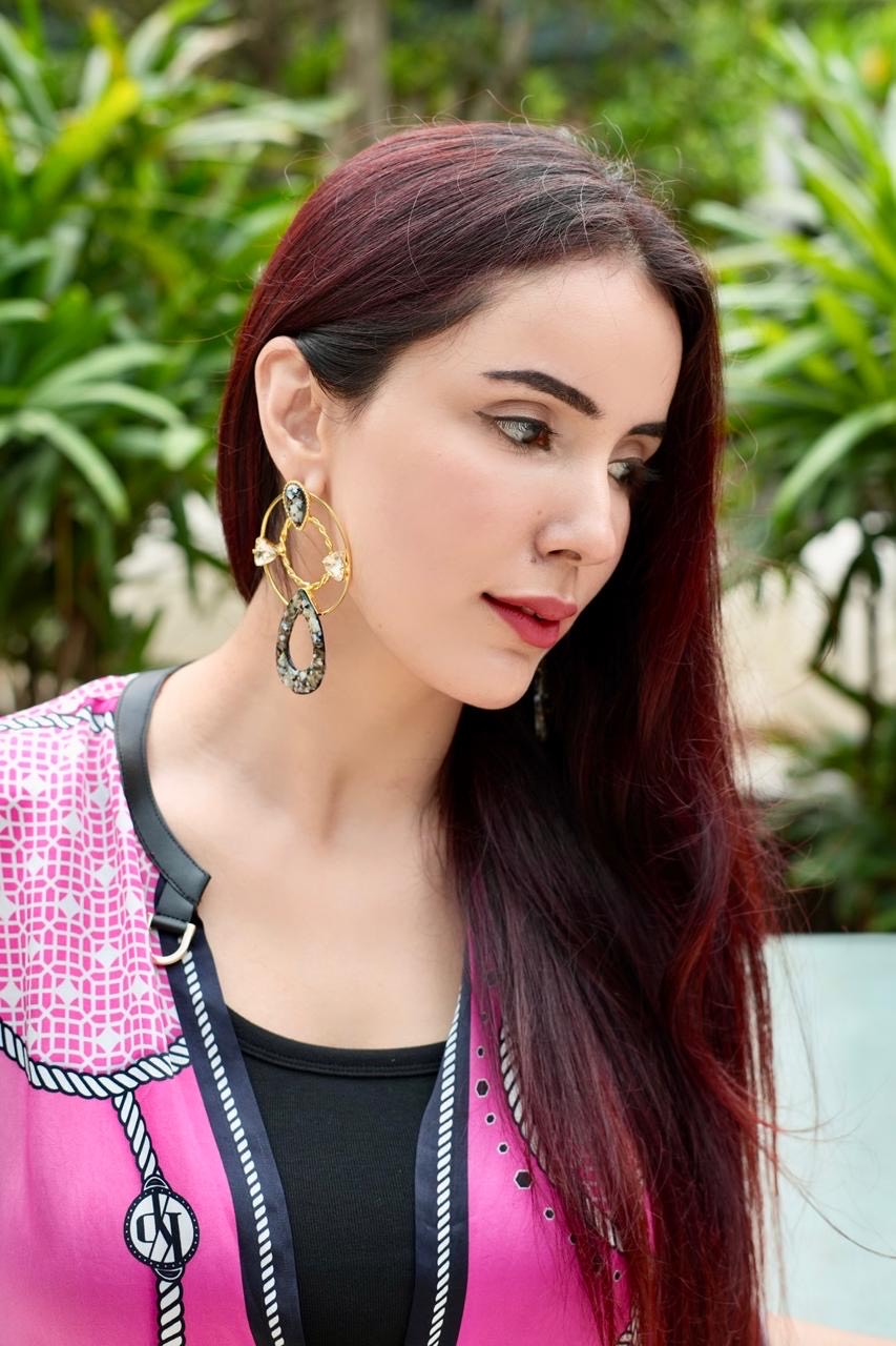 Our core metal is brass with 14k gold plating which is anti-tarnish and skin friendly. We use natural stones which retain their original color and shape which are ethically sourced across our vendor base worldwide