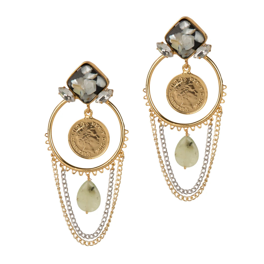 An absolute stunner a grand design comprising of victorian coins mother of pearl and gold platted tassel chains. Perfect for occasions and weddings.