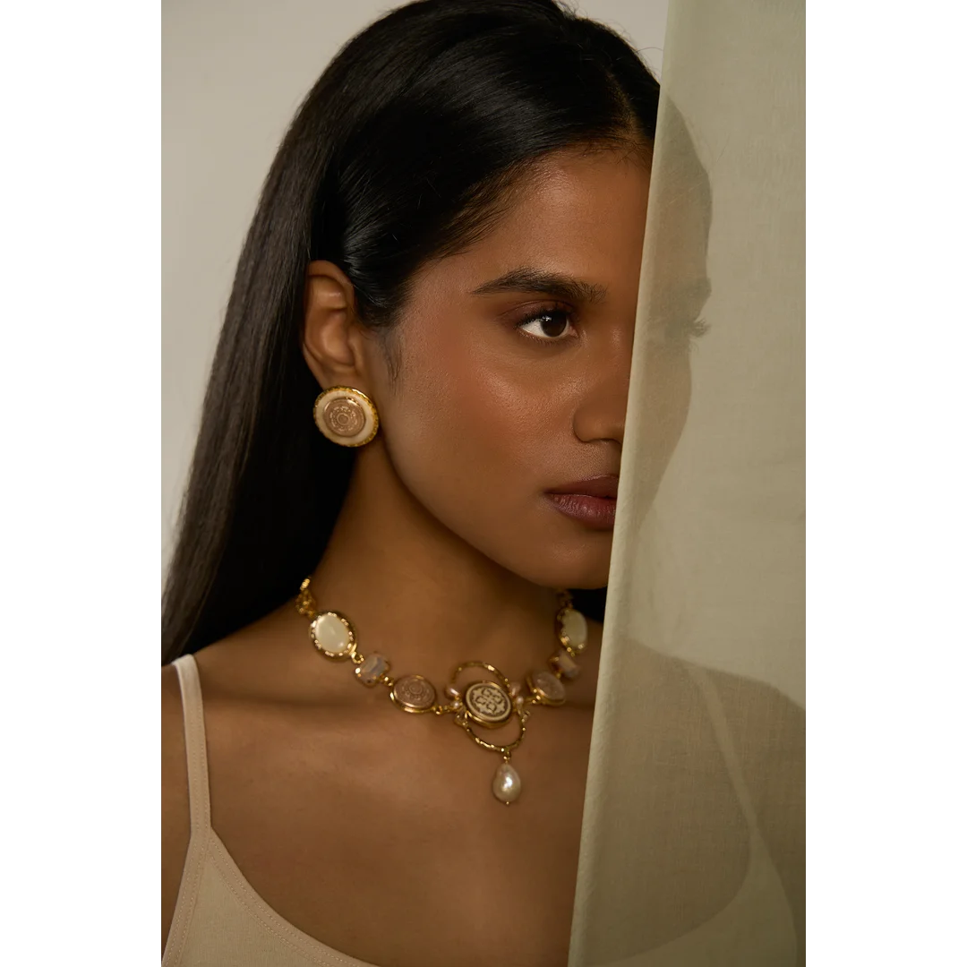 The vibrancy of enamels and pearls is well captured in this stunning choker. The natural colors of stones are easy to the eye at the same time styling is statement.