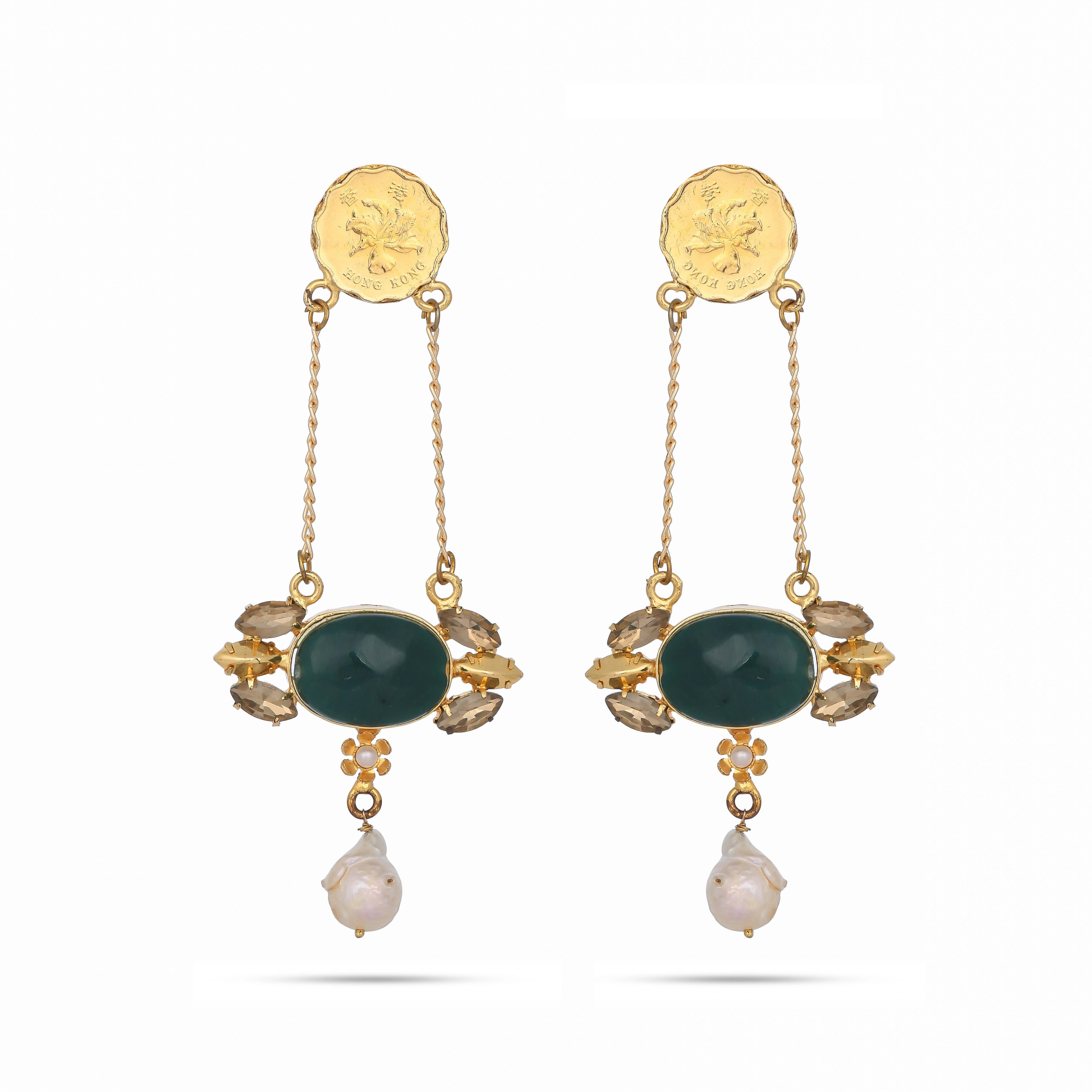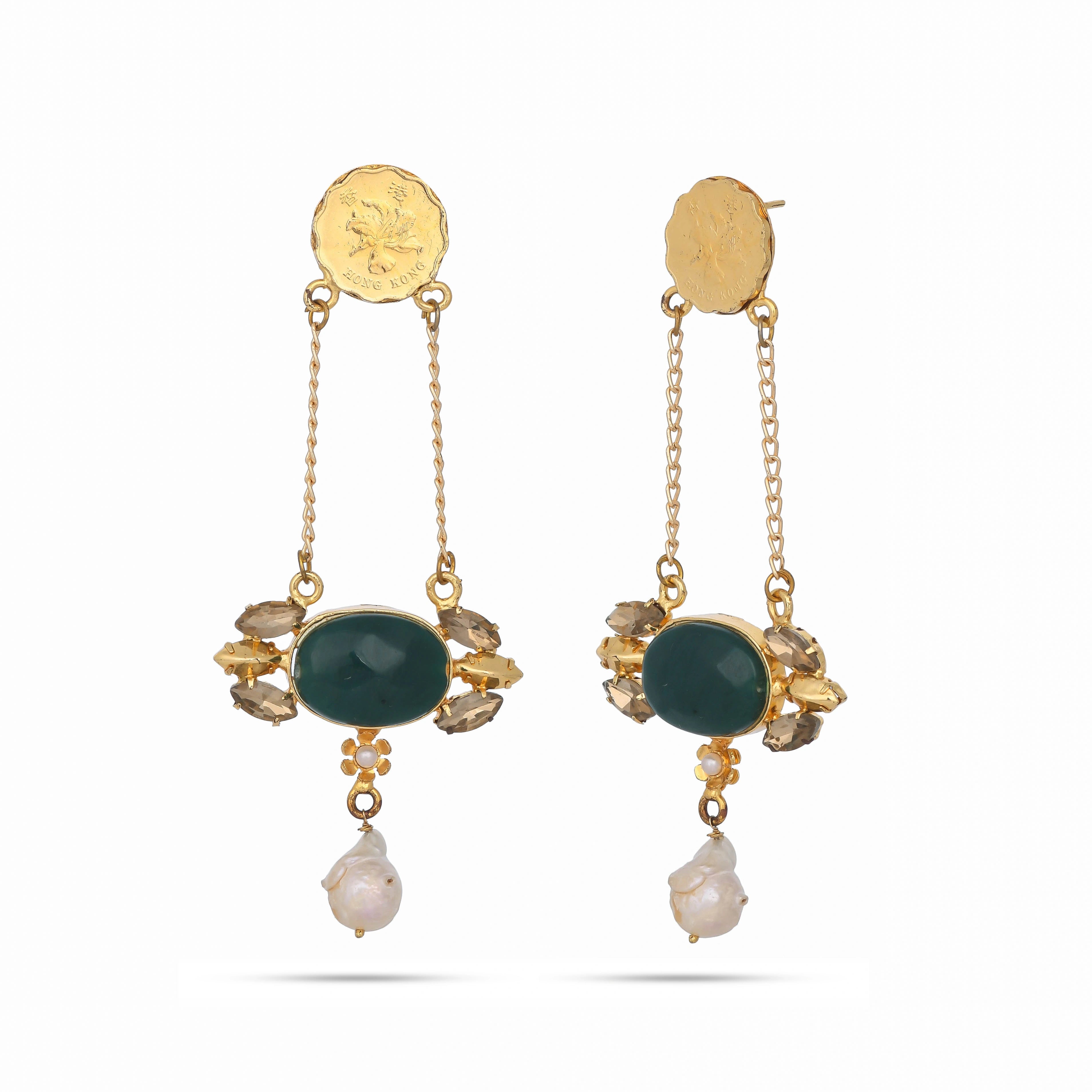 Turn heads with these stunners in lush green stone and vinatge coin. Style with a breezy saree or maxi. Styled on iconic Shilpa Shetty