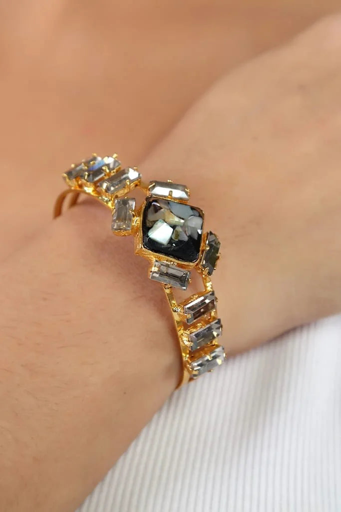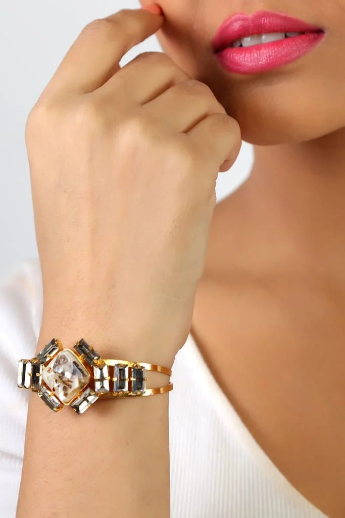 Embellished cuff bracelet with free size metal bangle an extention to your accessory game