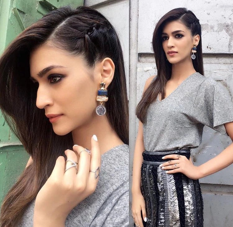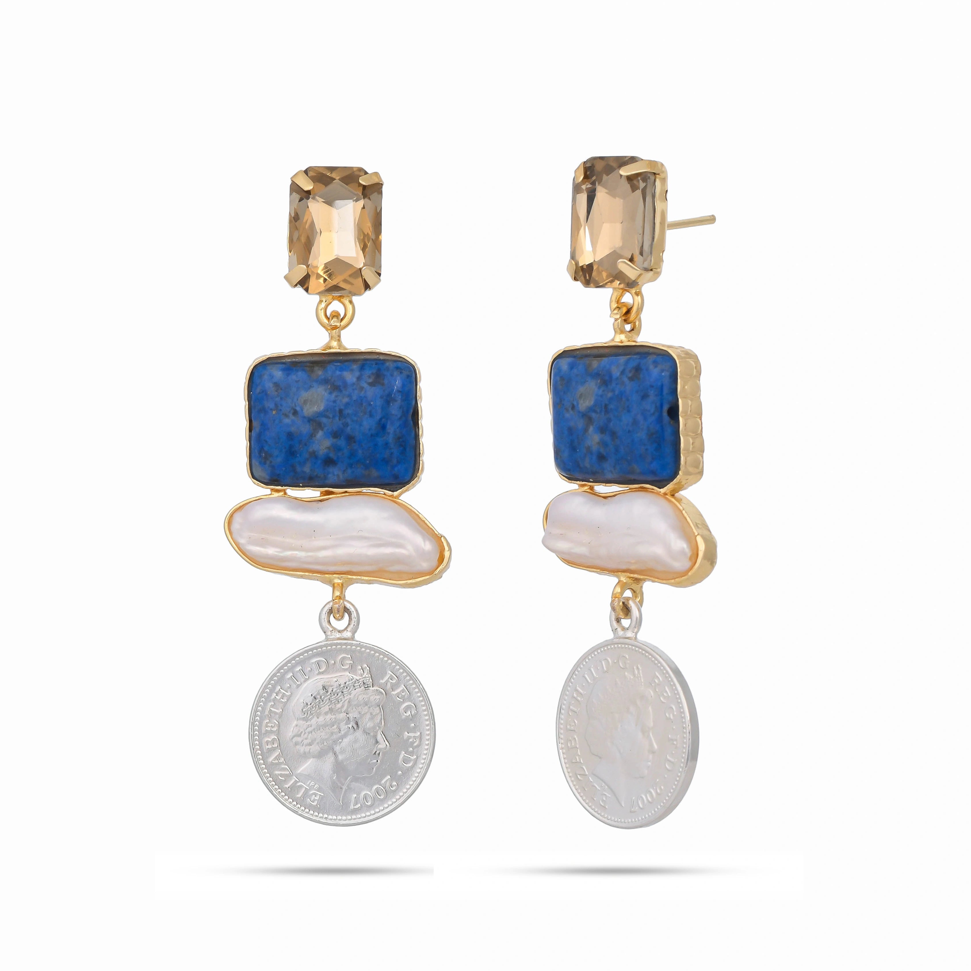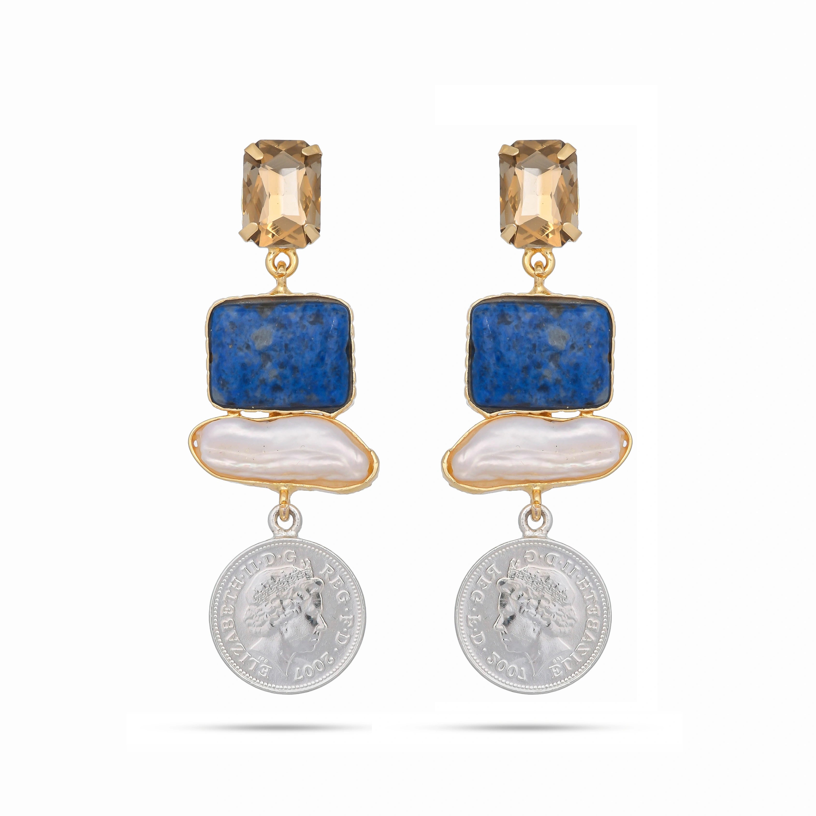 A design marvel these statement earrings features lapis lazuli baroque pearls and vintage silver coin. Styled on vivacious Kriti Sanon