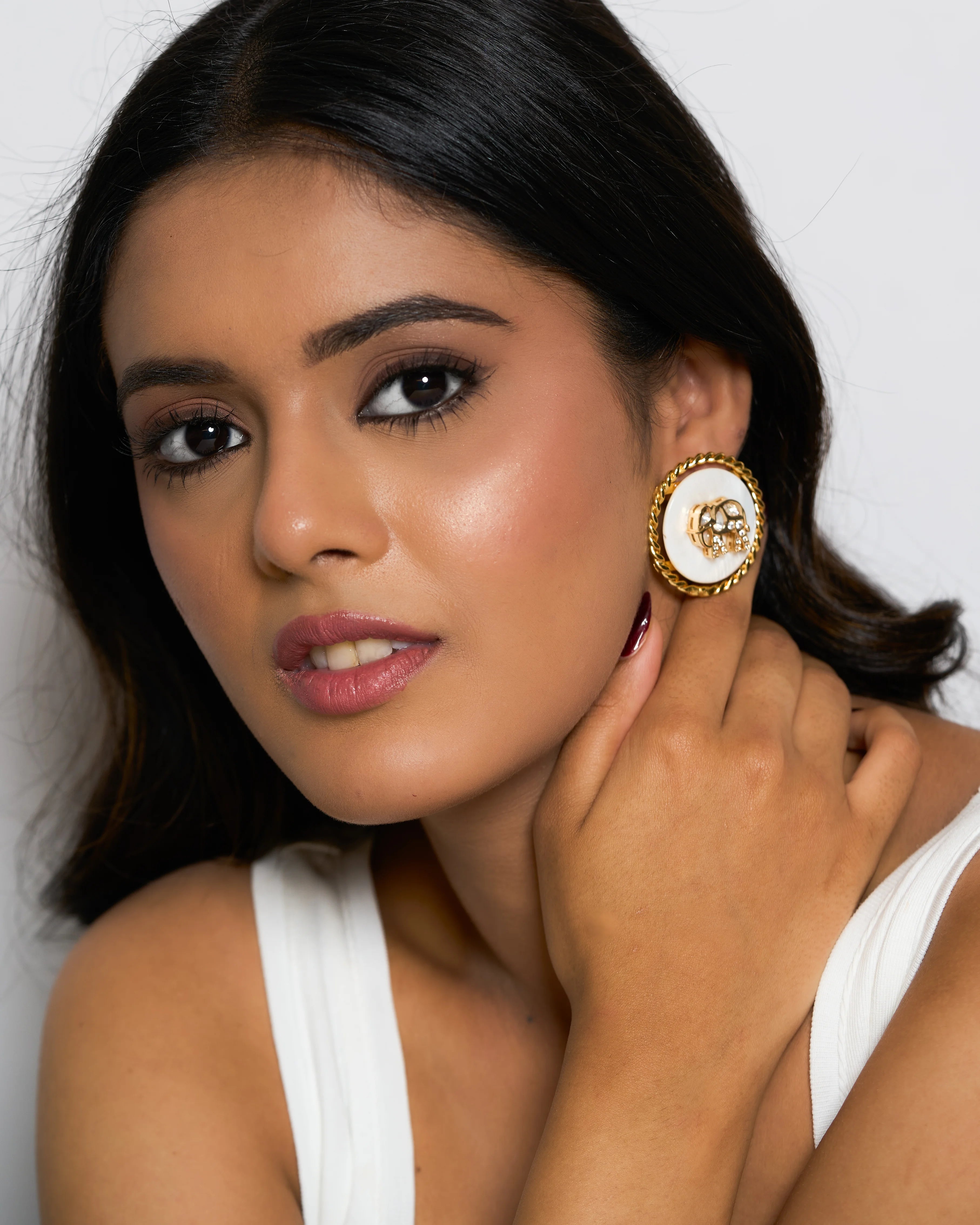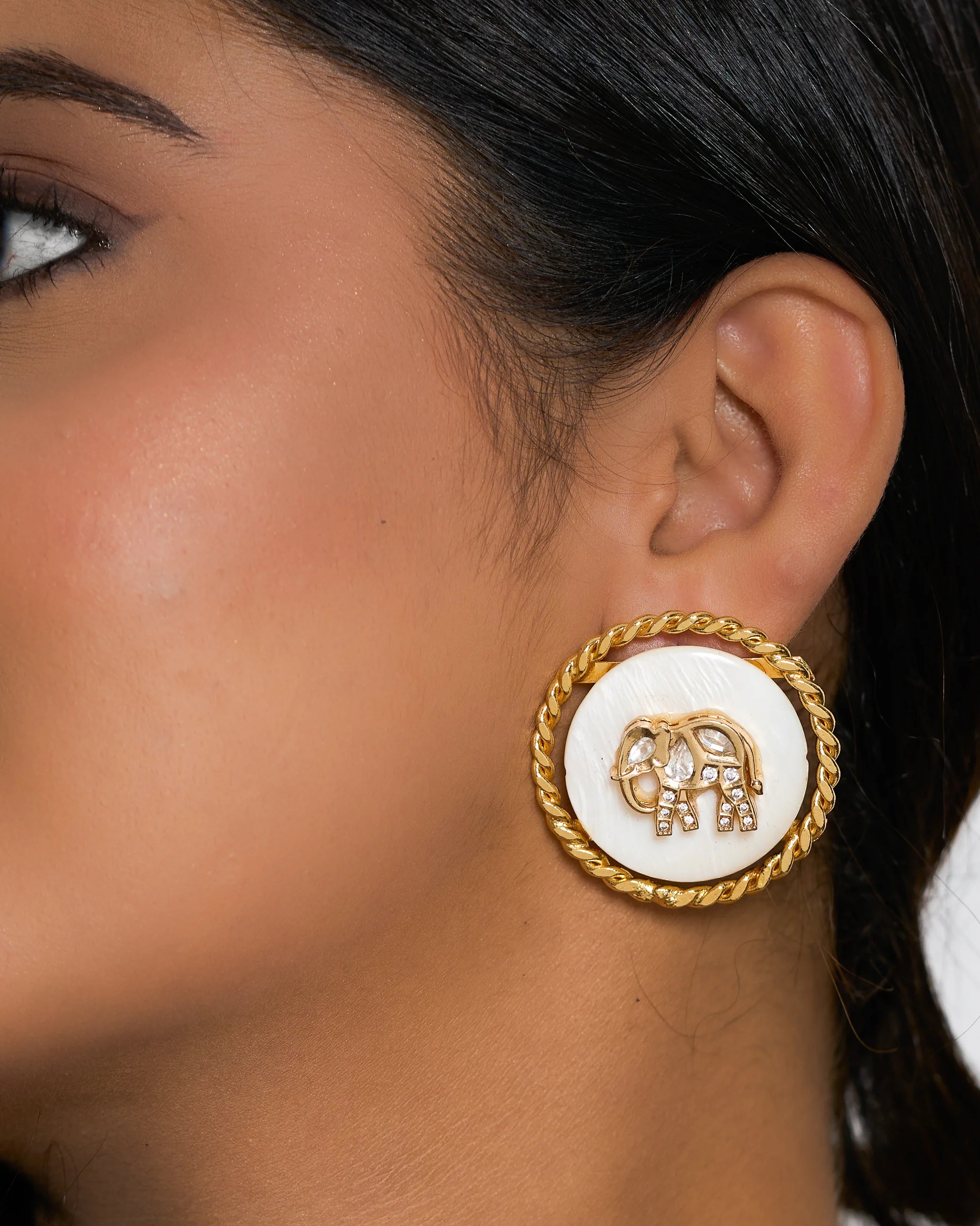 Our signature mother of pearl studs with elephant kundan motifs. This seasons clear favorite adored by all. Simply add them to your collection